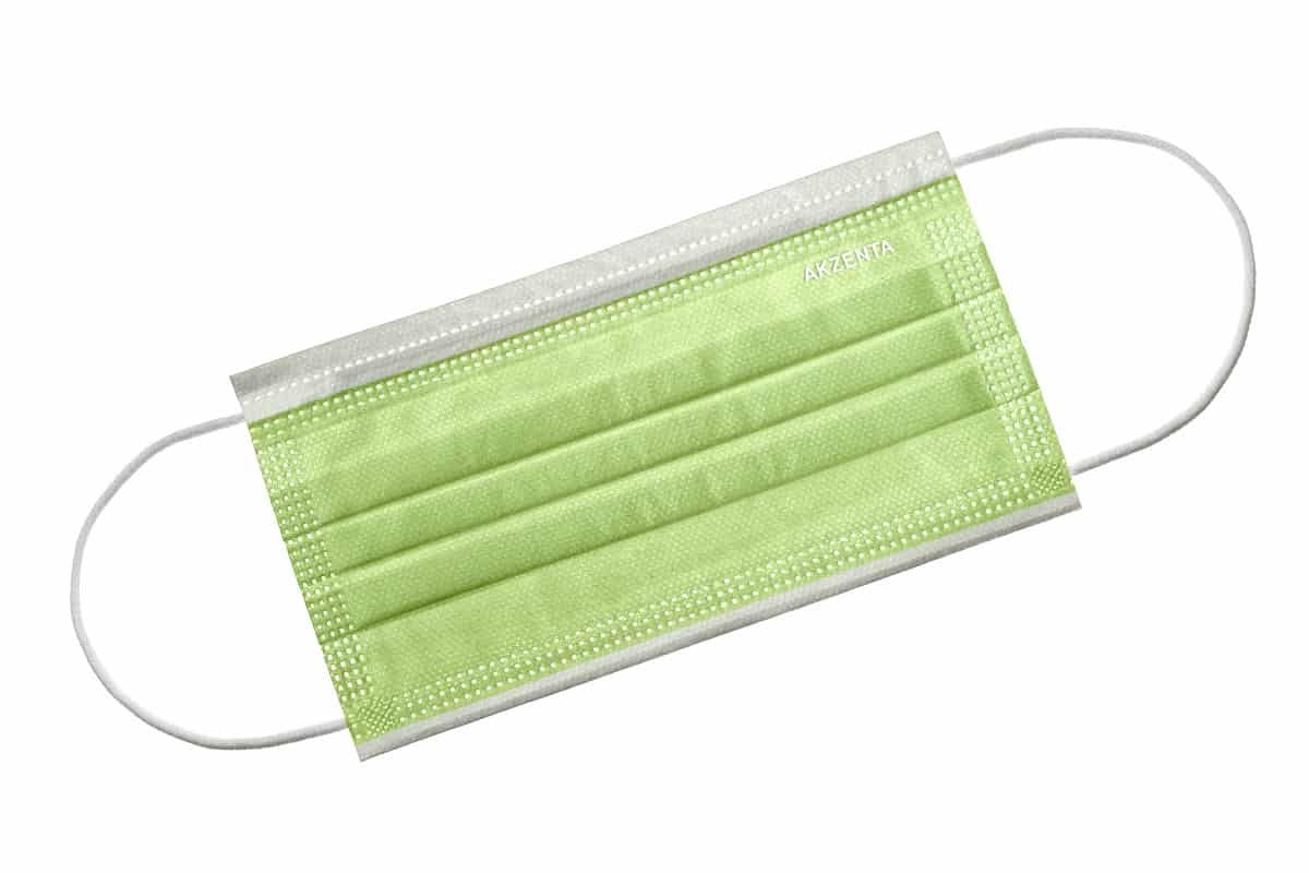 3-Laags mondkapje, elastische oorbandjes, mondneusmasker met neusbeugel. Voldoen aan EN14683.Hypoallergeen, glasvezel- nikkel- en latexvrij met CE certificering, non sterile. Verpakt per 50 stuks in dispenserdoos. Kleur: fresh green.