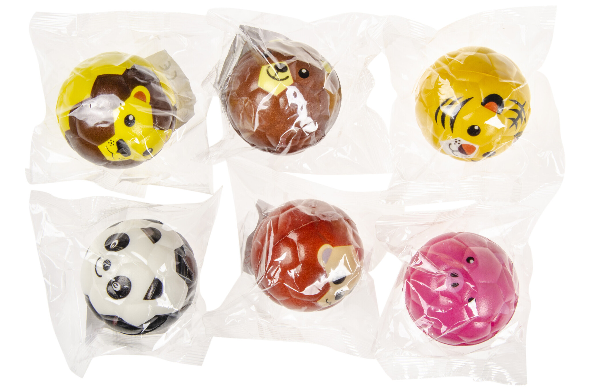 De ballen zijn uitgevoerd in diverse dieren uitvoeringen en worden assorti geleverd. Doorsnede: 6,3 cm.