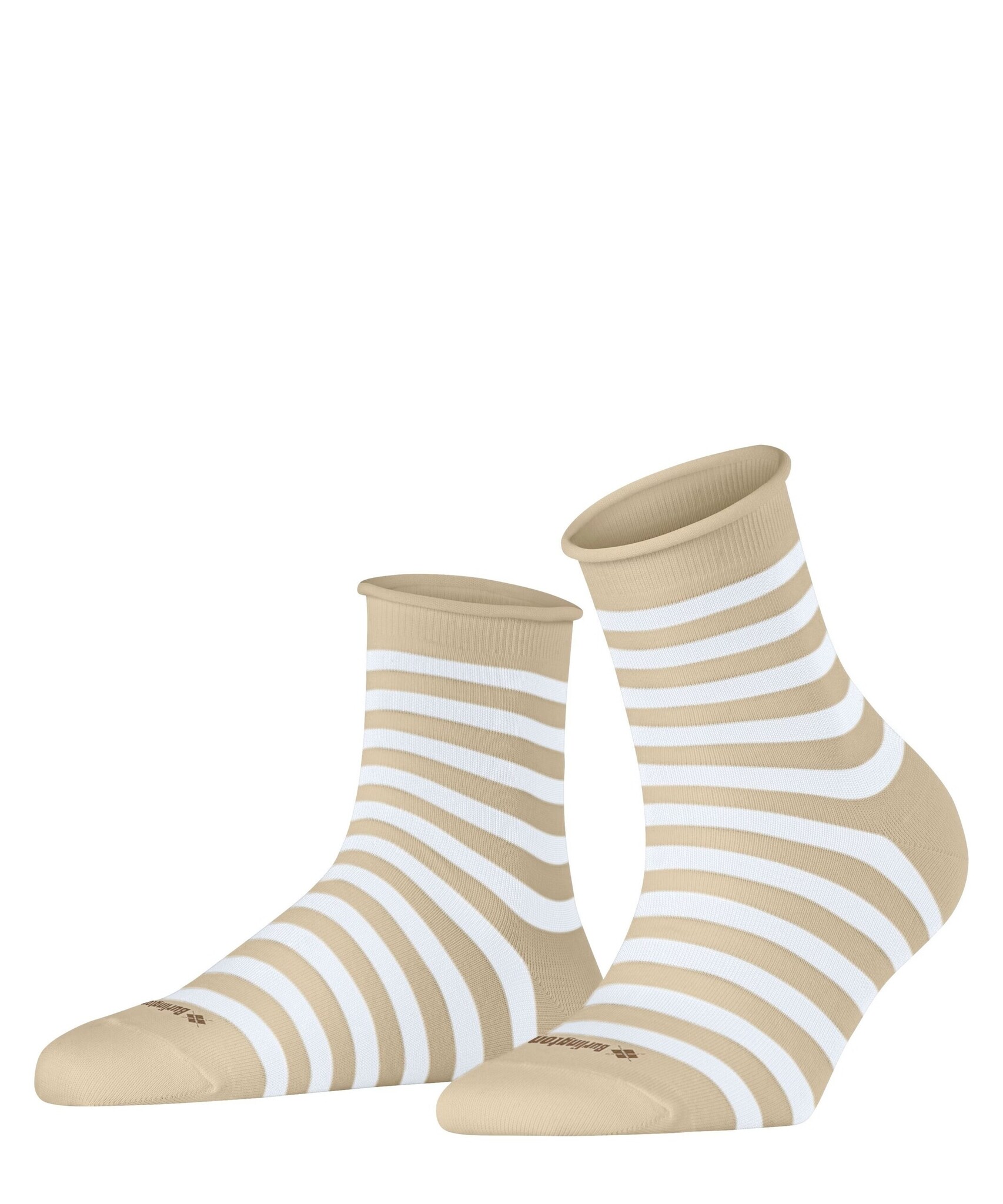 Een glinsterende mix van materialen met prachtig organisch katoen en een modern, elegant streeppatroon maken deze kousen tot een geraffineerde allrounder. De vrouwelijke, opgerolde boorden geven ze een subtiele, stijlvolle touch.