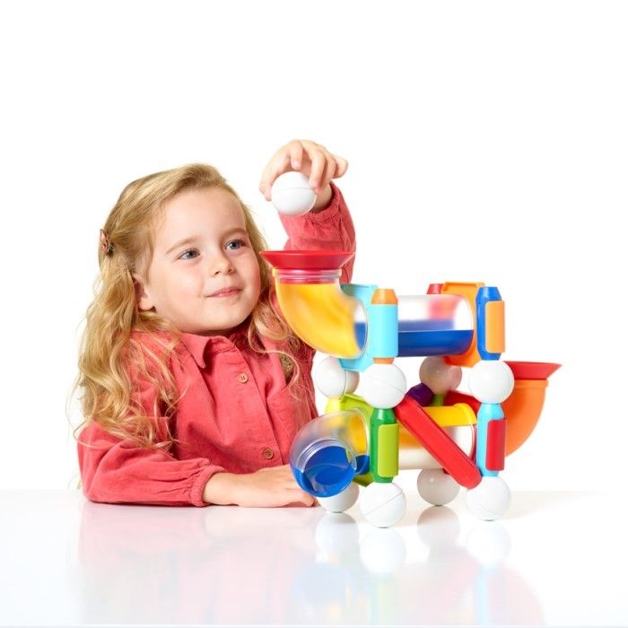 “Klik“ alle onderdelen samen om een originele ballenbaan te bouwen en laat de ballen rollen!