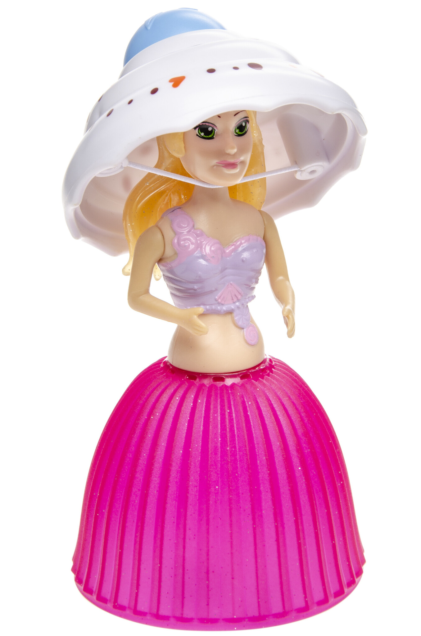 Draai de onderdelen van dit cupcake setje om en er komt een poppetje met jurk en hoed tevoorschijn! In diverse kleurstellingen, assorti geleverd.