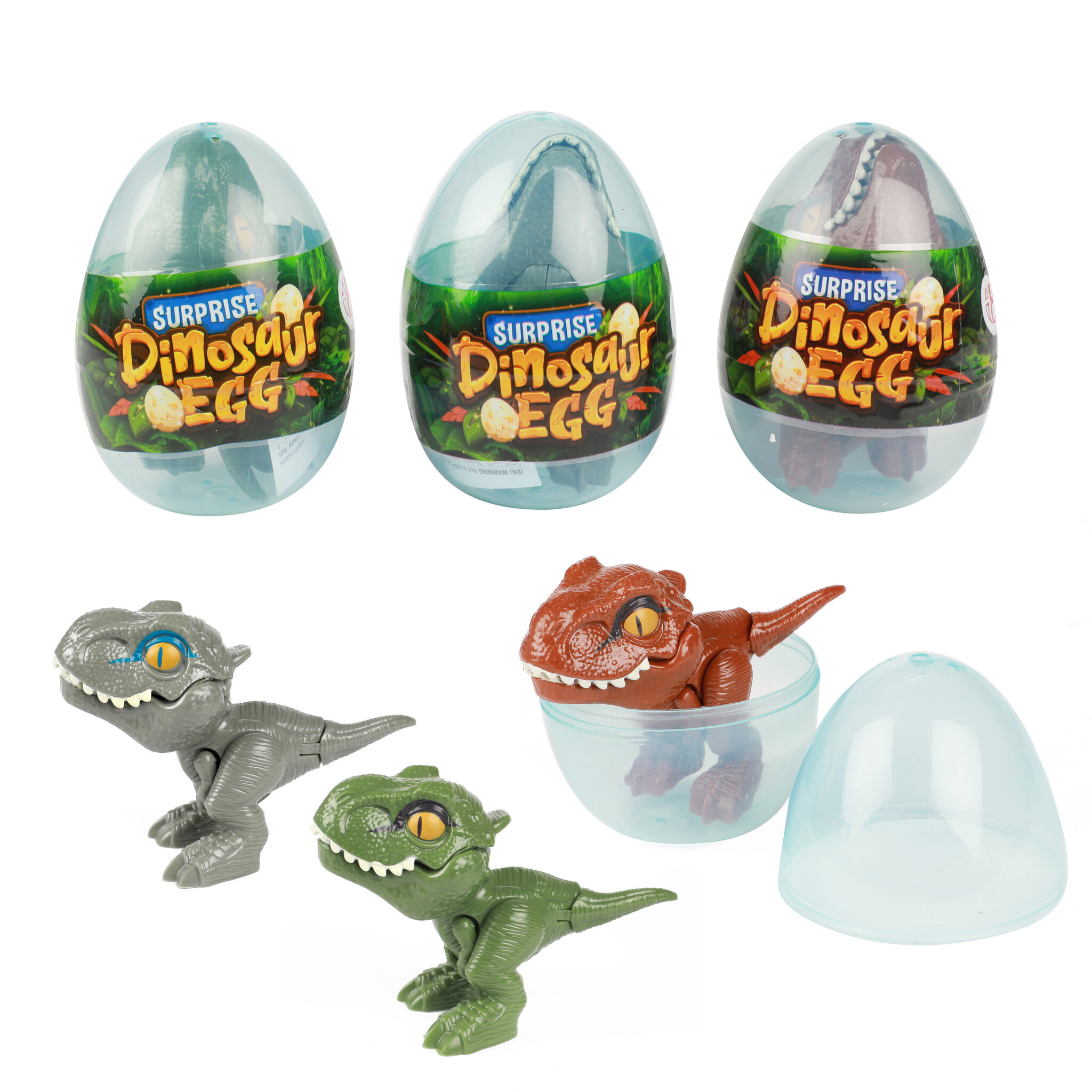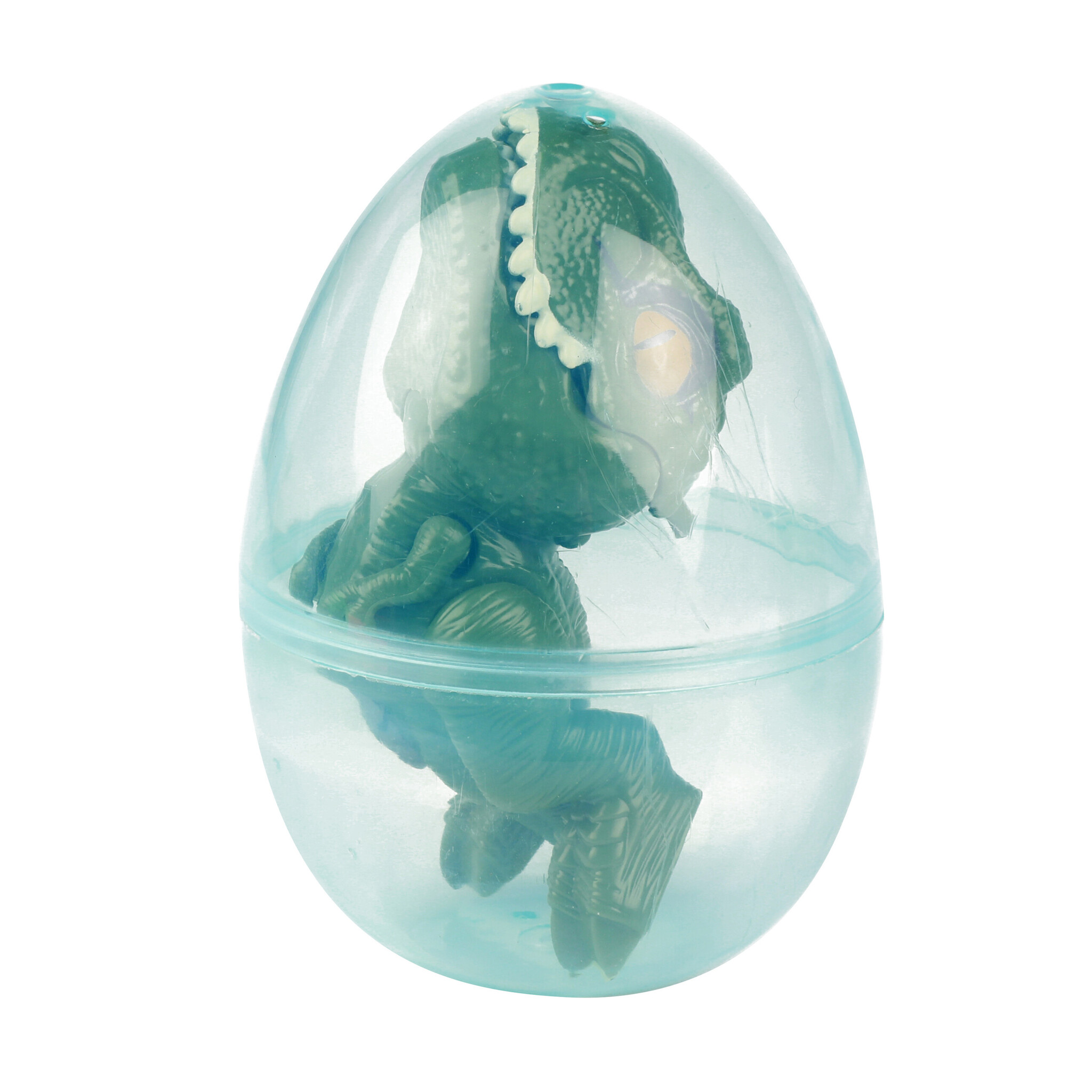 Surprise-ei met leuke dino er in. De dino heeft beweegbare pootjes en bek. In diverse kleuren, assorti geleverd. Afm.:6 x 6 x 9 cm.