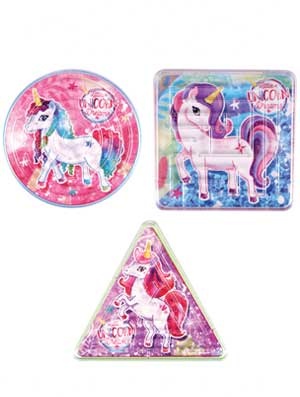 De geduldspelletjes eenhoorn zijn uitgevoerd in diverse vormen en designs en worden assorti geleverd. Afm. ca.: 6 cm.