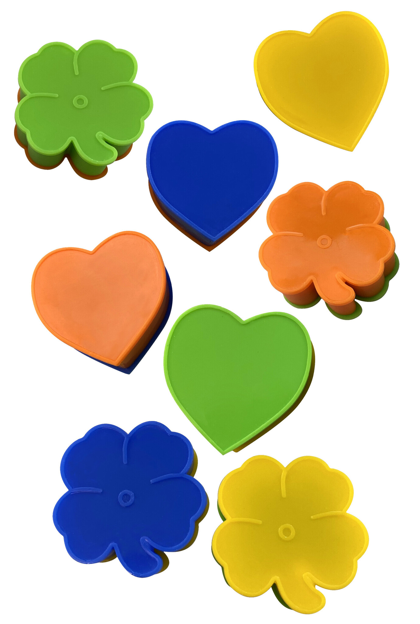 Het assortiment is uitgevoerd in 2 vormen; klaver en hart en worden assorti geleverd. Afm. ca.: 3,5 cm.