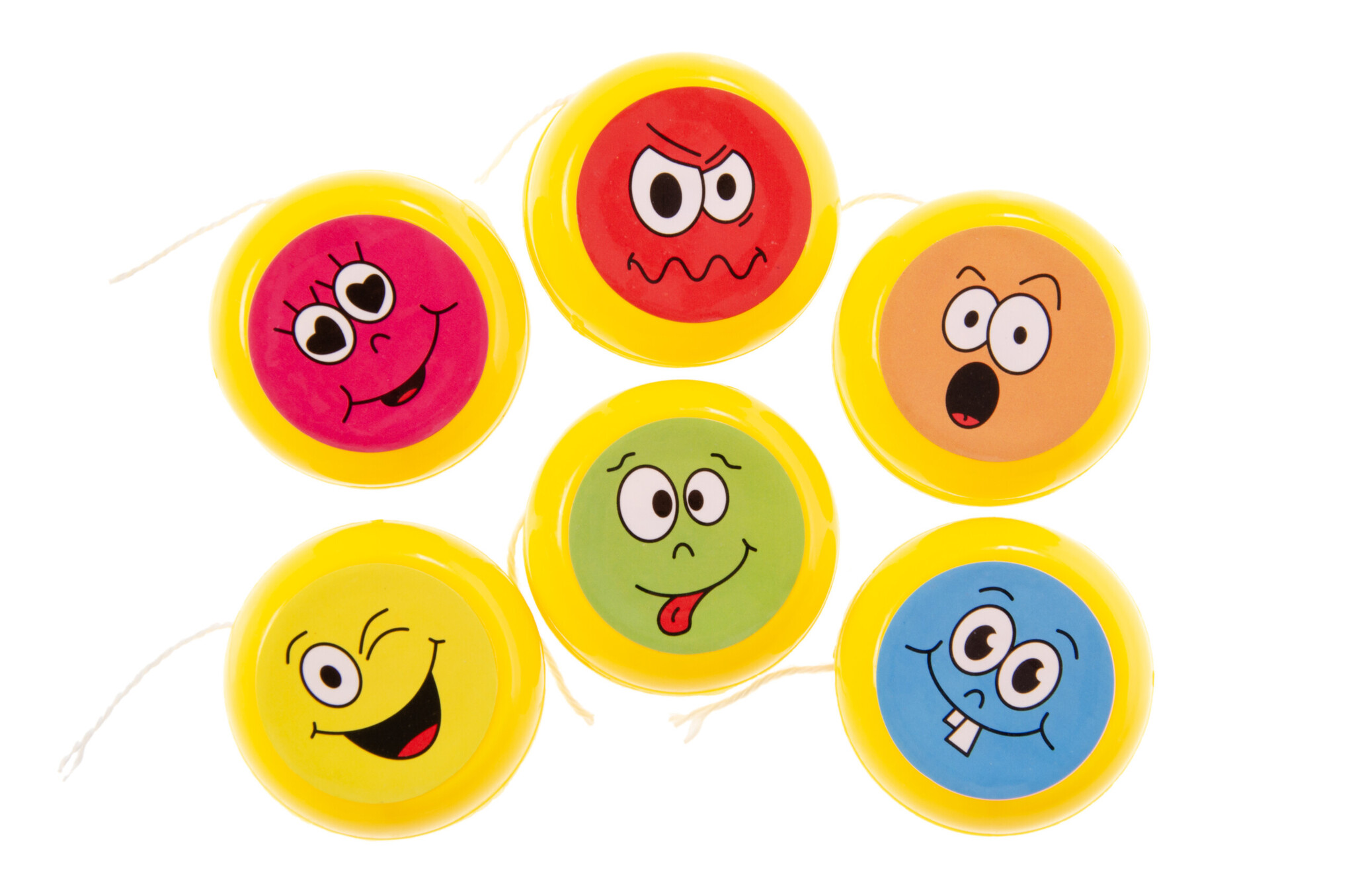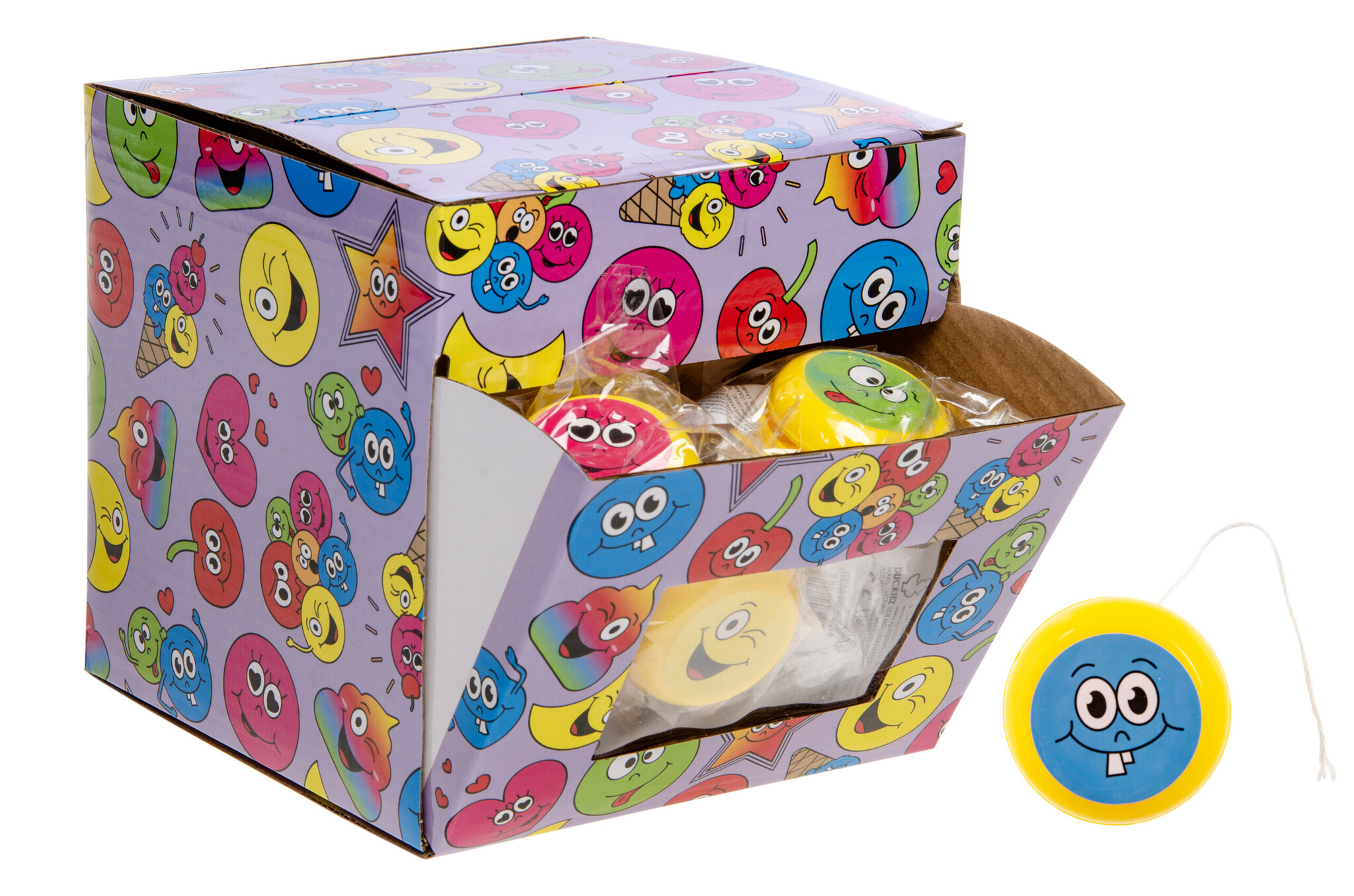 Terug van nooit weggeweest! Vrolijke jojo van ca. 4 cm met een lachend gezichtje. Geleverd in assorti kleuren en in een leuke uitdeelbox. Perfect voor traktaties, beloningen of feestjes met een glimlach!