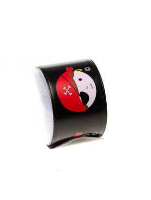 Deze klaparmband piraat is verkrijgbaar in zwart en rood (willekeurig geleverd). Afmeting klaparmband: 22 x 3 cm.
