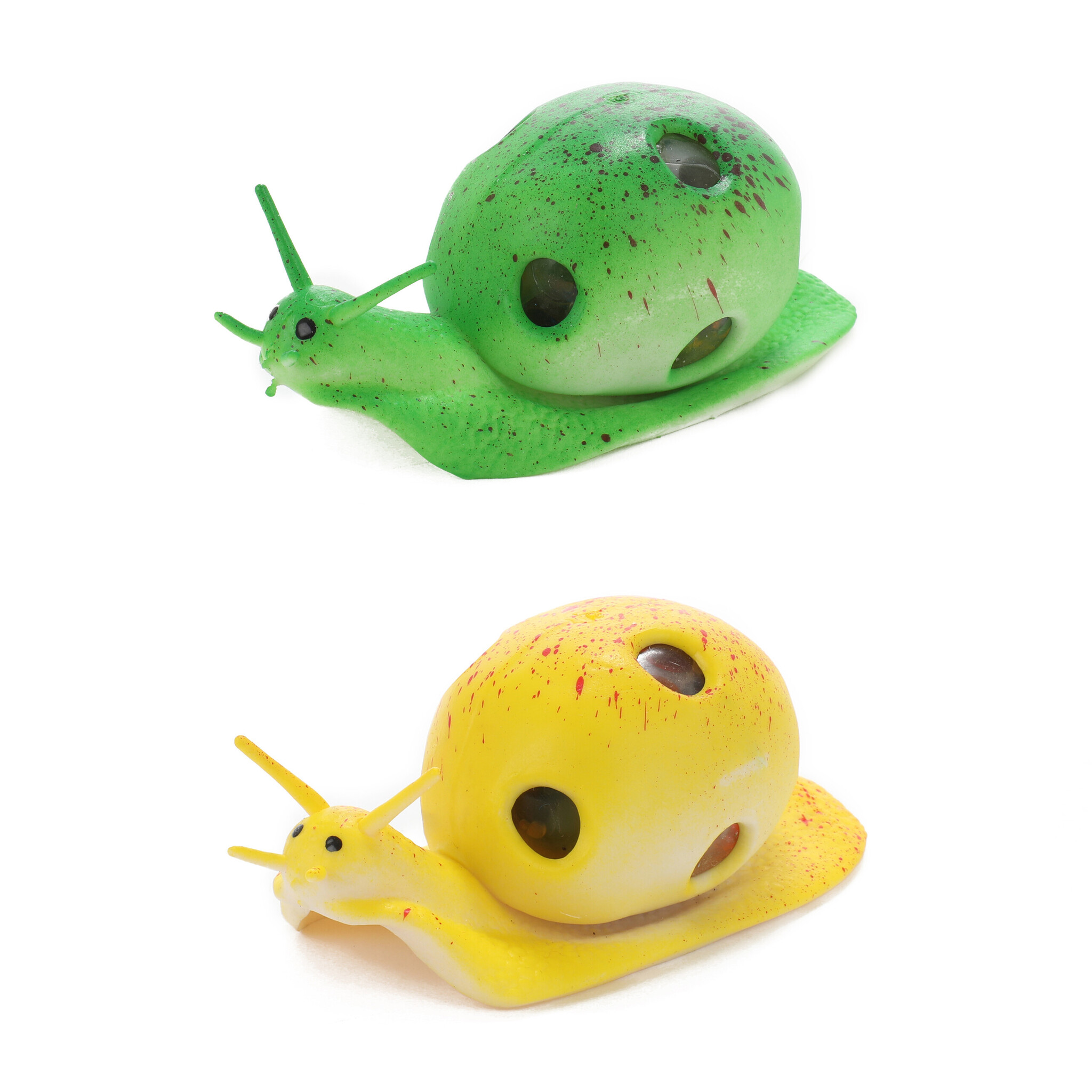 Té leuk! Knijp in de slak en door de gaten ontstaan kleine balletjes. In diverse kleuren, assorti geleverd. Afm. ca. 5 x 10 x 4,5 cm Geschikt vanaf 3 jaar.