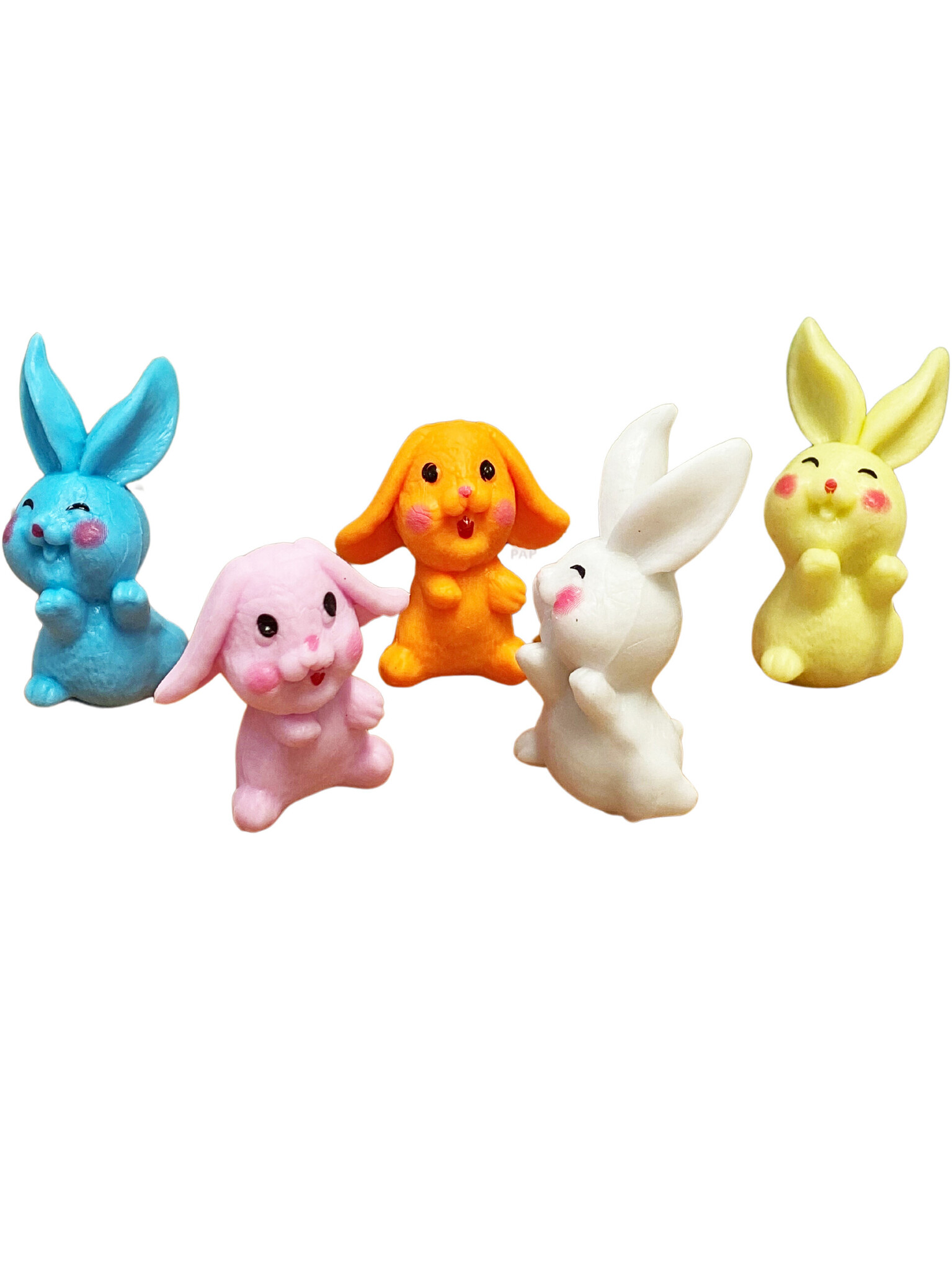 Te schattig deze leuke kleine konijntjes in diverse vrolijke kleuren. Leuk ook om te sparen! Afm. ca. 5 cm.