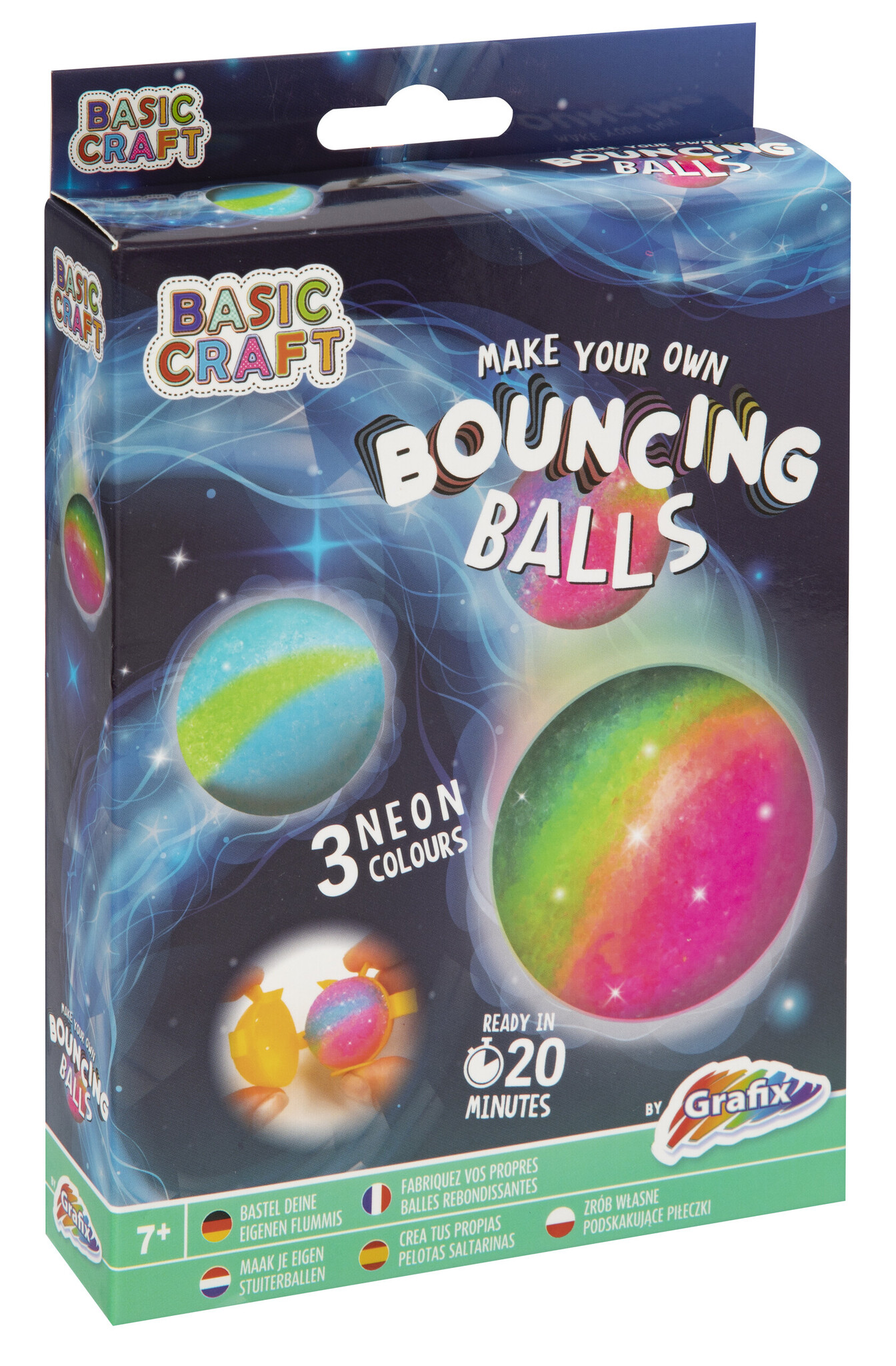 Super leuke set om in ca. 20 minuten zelf een stuiterbal te maken! Bevat instructies, kleurpoeder en een stuiterbalvorm. Afm. verpakking: 20 x 14 cm.