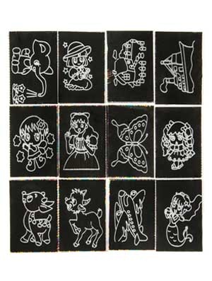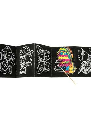 Het kraskaarten boekje bevat meerdere kaartjes in één boekje. Met krasstokje. Afm. ca.: 7,3 x 42,4 cm. ( gehele lengte)