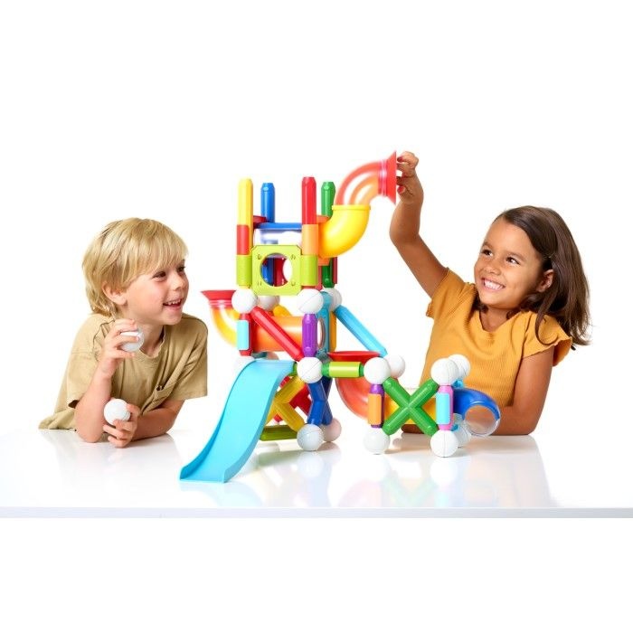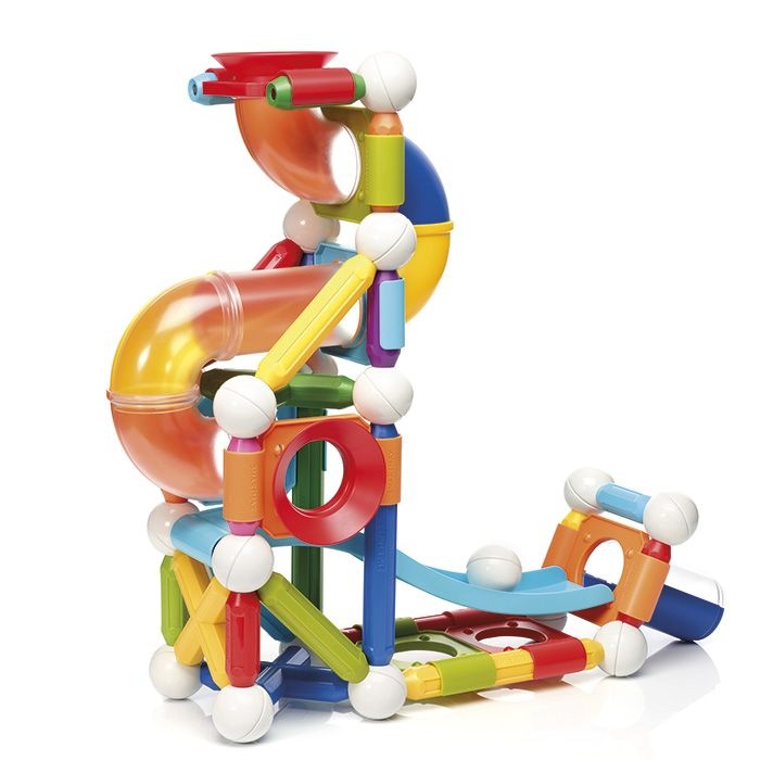 Maximale creativiteit! Bouw de ultieme ballenbaan met 71 onderdelen! Of maak andere gekke machines en laat de ballen rollen.