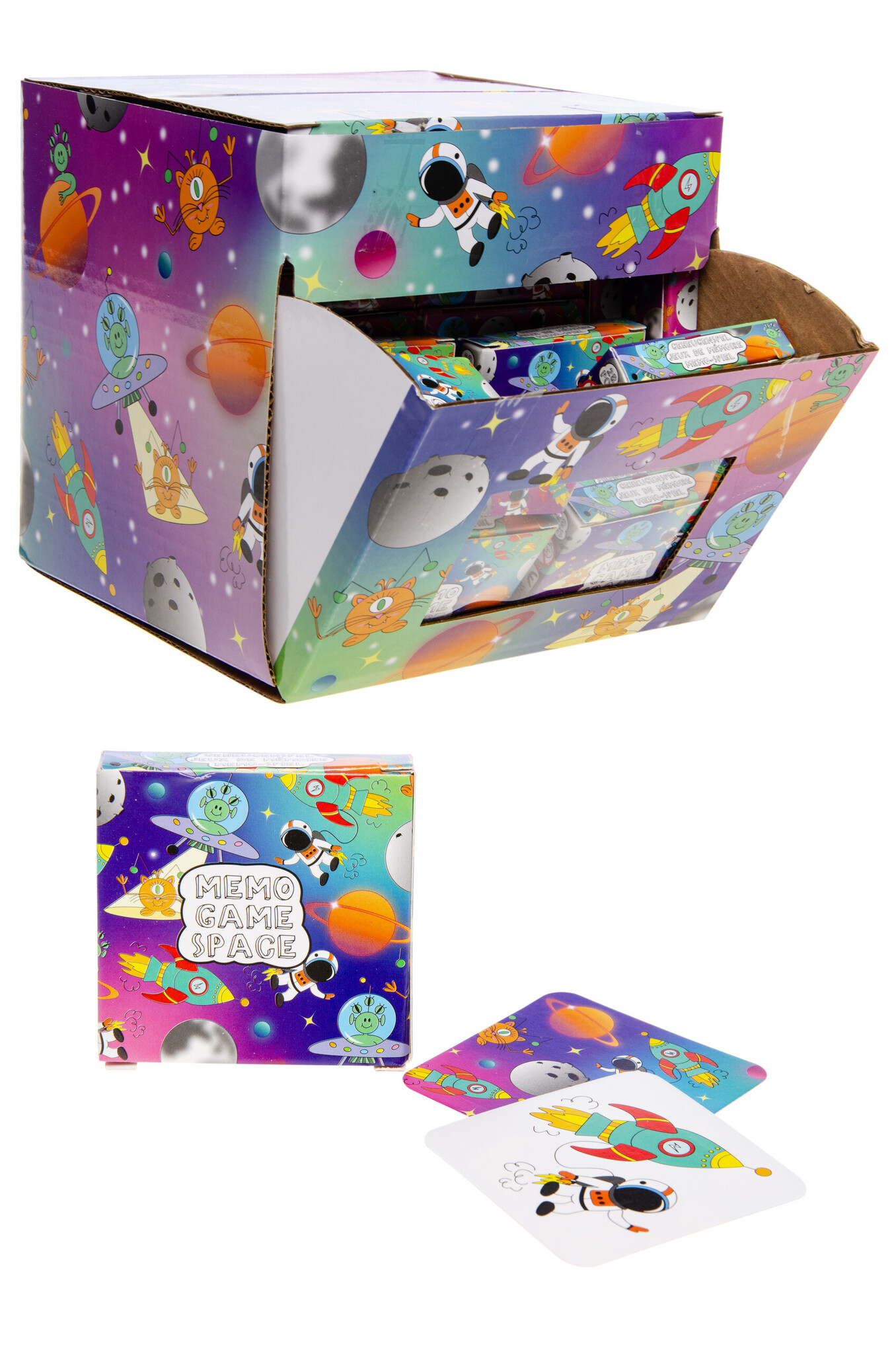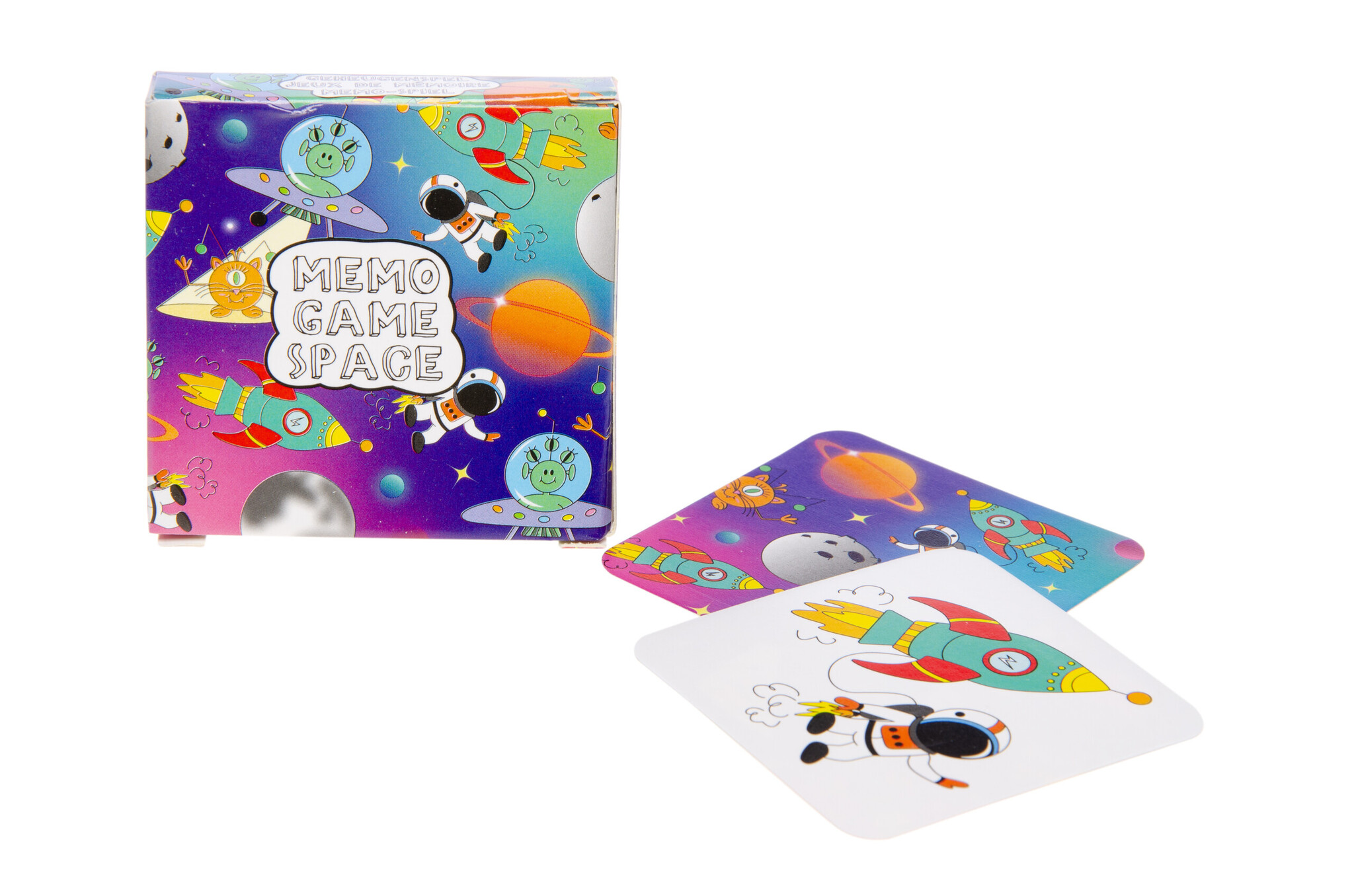 Ruimtelijk geheugenplezier! Mini memoryspel met 28 kaartjes van 5 x 5 cm, vol kleurrijke ruimte-afbeeldingen. Geleverd in een fraaie uitdeelbox. Ideaal als educatief en leuk uitdeelcadeautje voor jonge ruimtefans!