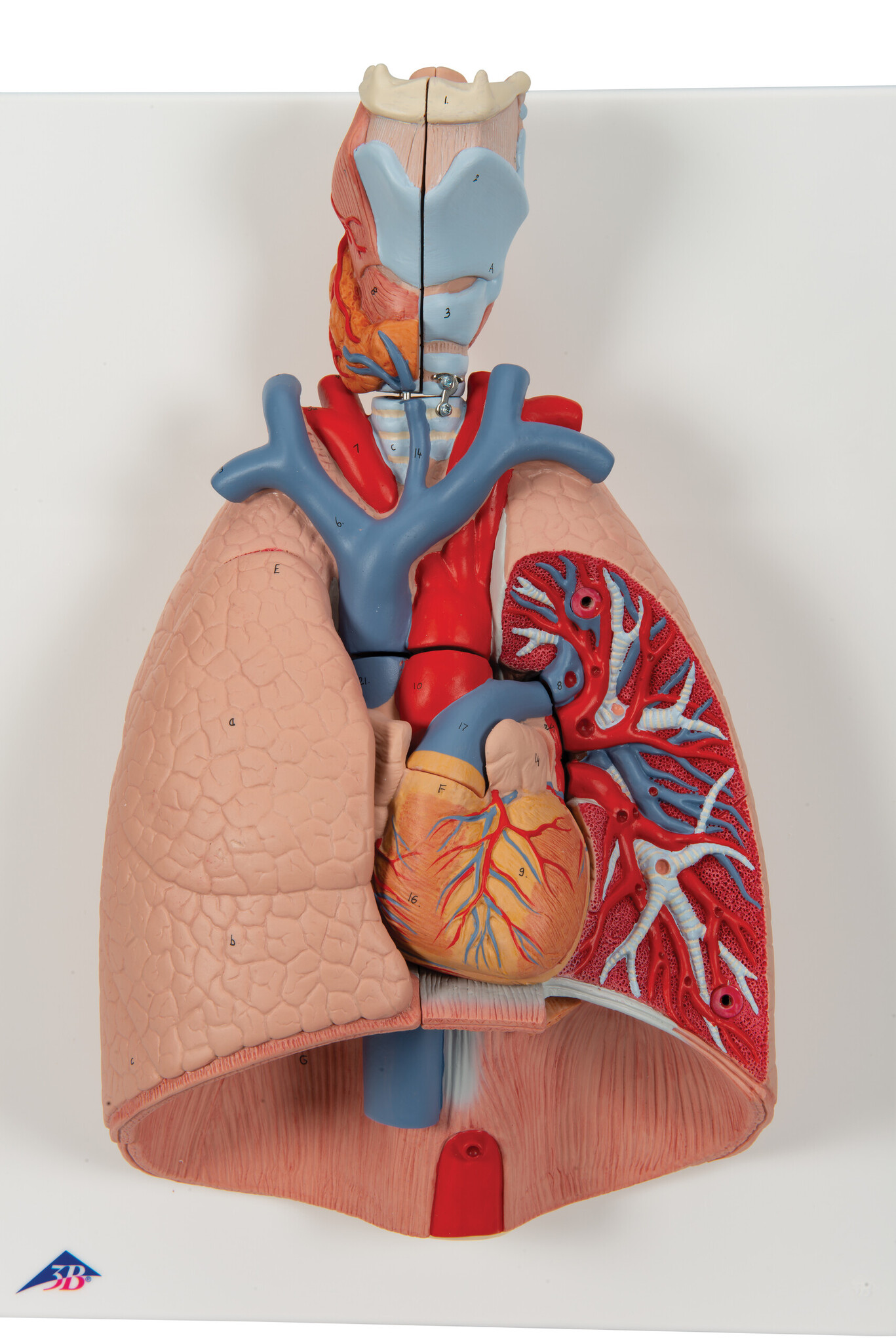 Dit hoogwaardige longmodel met strottenhoofd (larynx) is van eerste klas kwaliteit en biedt een gedetailleerde weergave van de anatomie van het ademhalingsstelsel en omliggende structuren.