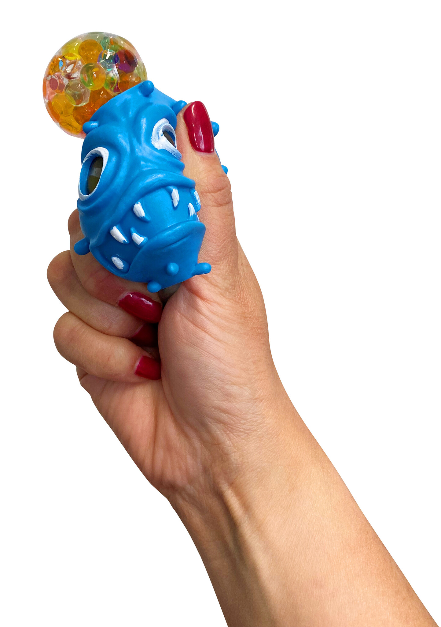 Knijp in het monster en er komen allerlei gekleurde bolletjes tevoorschijn!