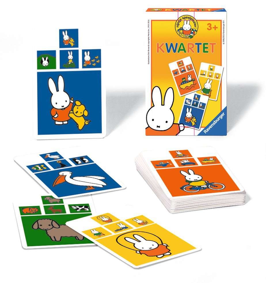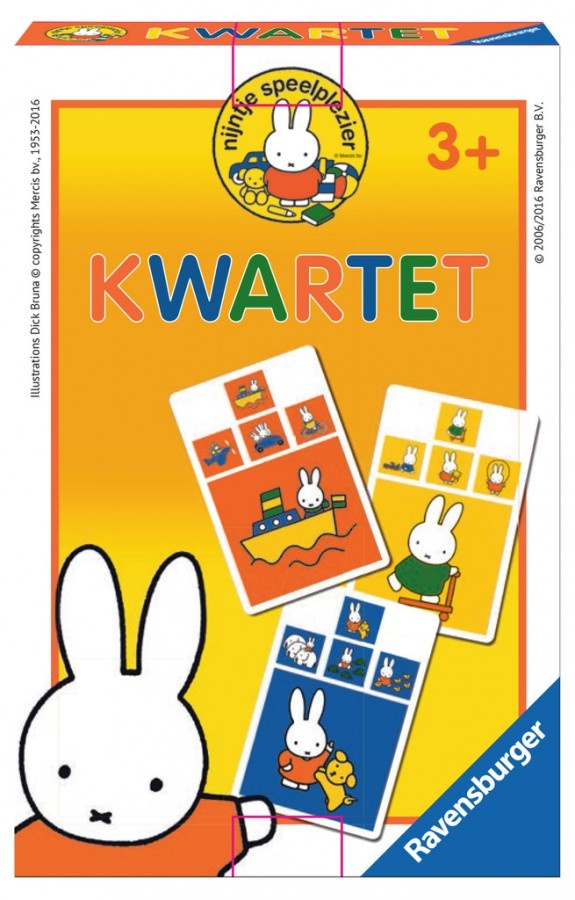 Een kwartet met Nijntje en andere tekeningen van Dick Bruna, vooral geschikt voor kleuters die nog niet kunnen lezen.