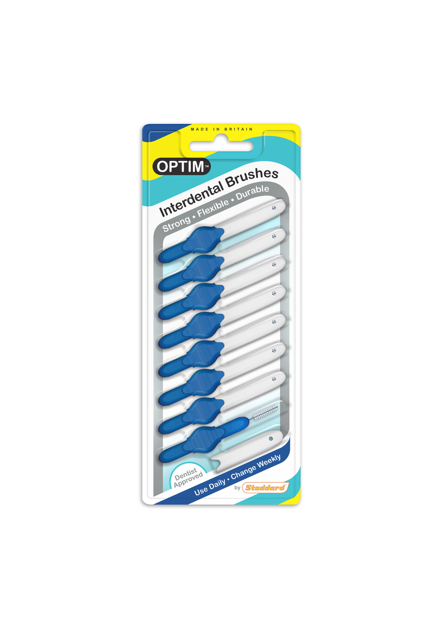 De interdental brushes van Stoddard hebben een origineel en karakteristiek design. De borsteltjes zijn ergonomisch in gebruik vanwege zijn comfortabele grip. Elk borsteltje heeft zijn eigen beschermkapje dat tevens dienst kan doen als verlenging van de grip en bevat een roestvrijstalen kern met plastic bedekt, om galvanische schokjes te voorkomen.