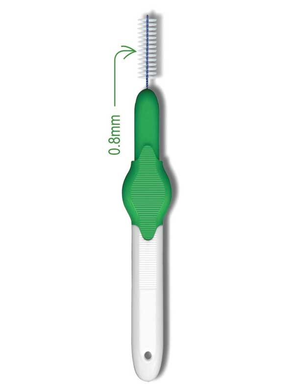 De verbinding tussen de grip en het borsteltje is door een revolutionair productieproces zo vervaardigd dat scheiding van beide delen onmogelijk is. Door het gebruik van diverse kleuren zijn de maten van de borsteltjes gemakkelijk te herkennen.