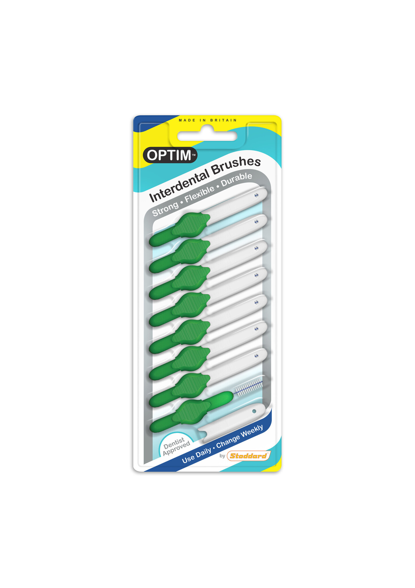 De interdental brushes van Stoddard hebben een origineel en karakteristiek design. De borsteltjes zijn ergonomisch in gebruik vanwege zijn comfortabele grip. Elk borsteltje heeft zijn eigen beschermkapje dat tevens dienst kan doen als verlenging van de grip en bevat een roestvrijstalen kern met plastic bedekt, om galvanische schokjes te voorkomen.