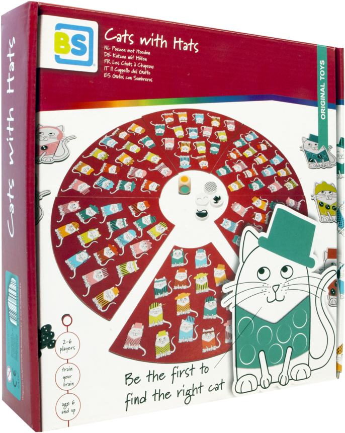 Gooi de fiches op, rol met de dobbelsteen en combineer alle eigenschappen. Vind nu als eerste de poes met deze eigenschappen en win een knoop voor jouw eigen kat. De eerste speler met een volledig beknoopte kat, wint het spel.