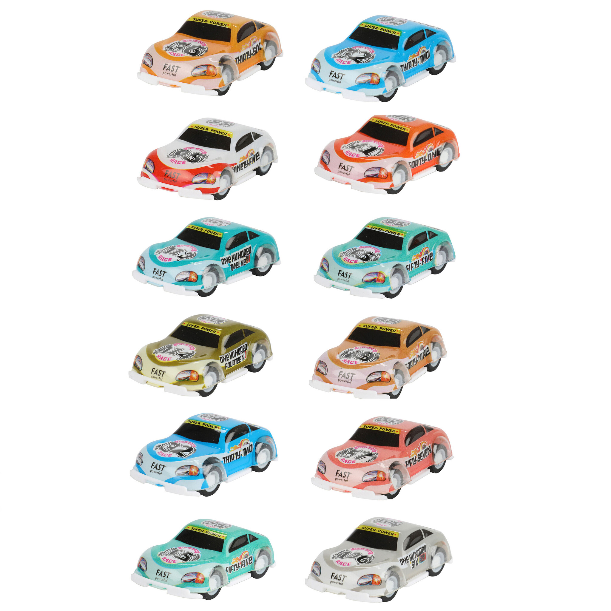 Race erop los met deze stoere raceauto's met pullback functie. Worden assorti kleuren geleverd. Afm. ca. 3,5 cm.