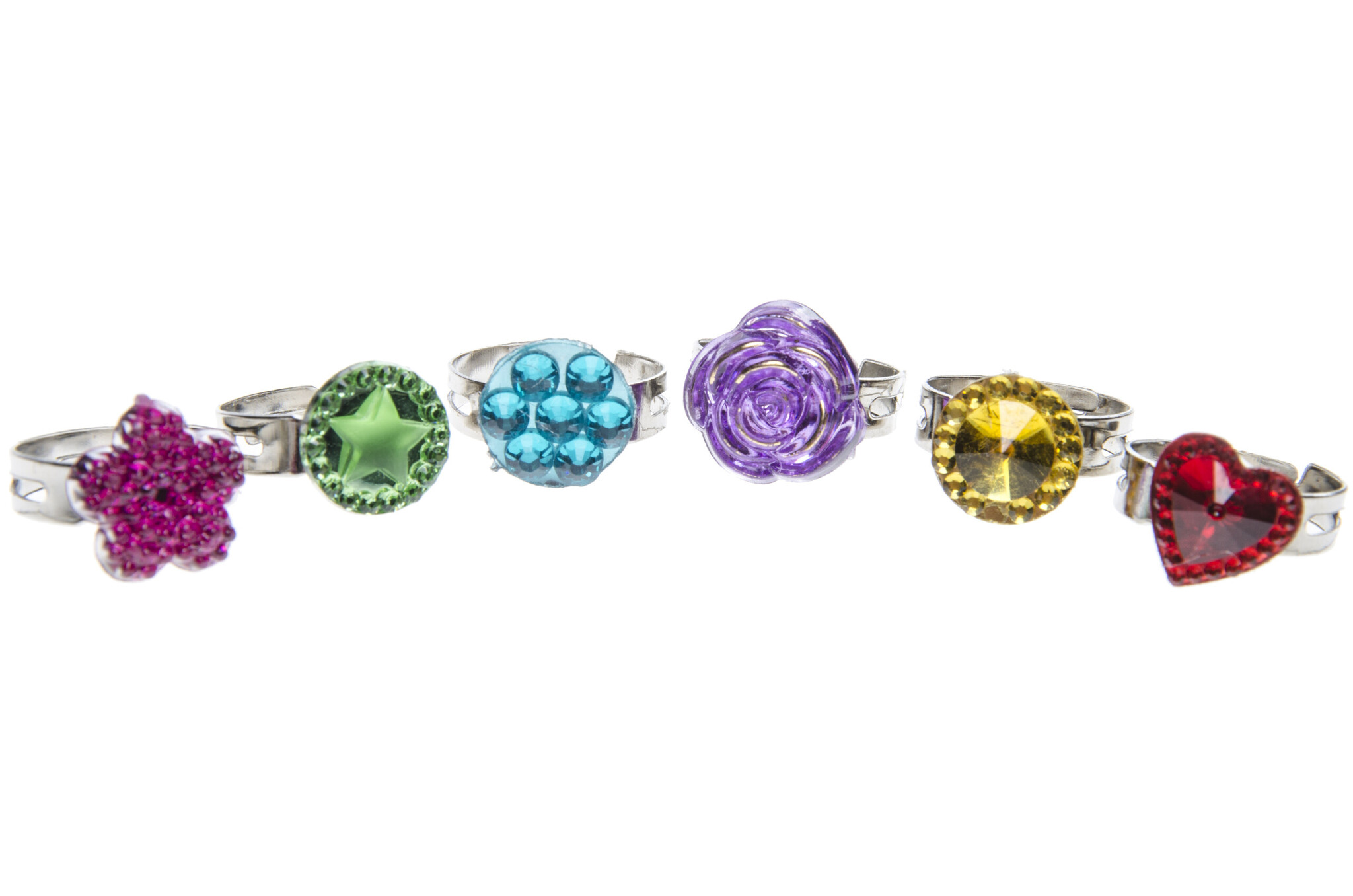Ringen colors zijn uitgevoerd in diverse kleuren en steentjes, verstelbaar en worden assorti geleverd.