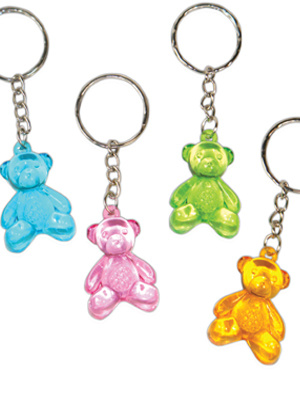 Deze beertjes-sleutelhangers worden in willekeurige kleuren geleverd. Afm. van deze kindersleutelhanger: ca. 3,5 x 2,5 cm.