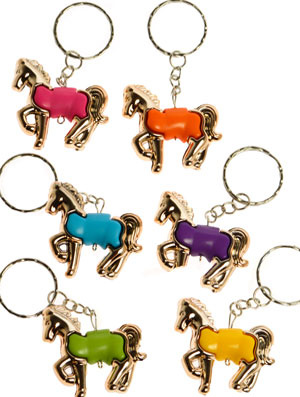 De sleutelhangers met paard worden in willekeurige kleuren geleverd. De sleutelhanger is ongeveer 4 cm groot.