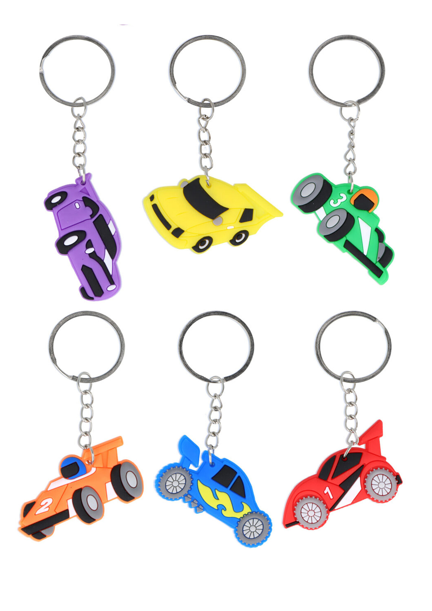 Altijd in de hoogste versnelling! Stoere rubberen sleutelhanger van ca. 5 cm in de vorm van een raceauto. Assorti modellen geleverd. Leuk voor kleine autofans als uitdeelcadeautje of beloning met vaart.