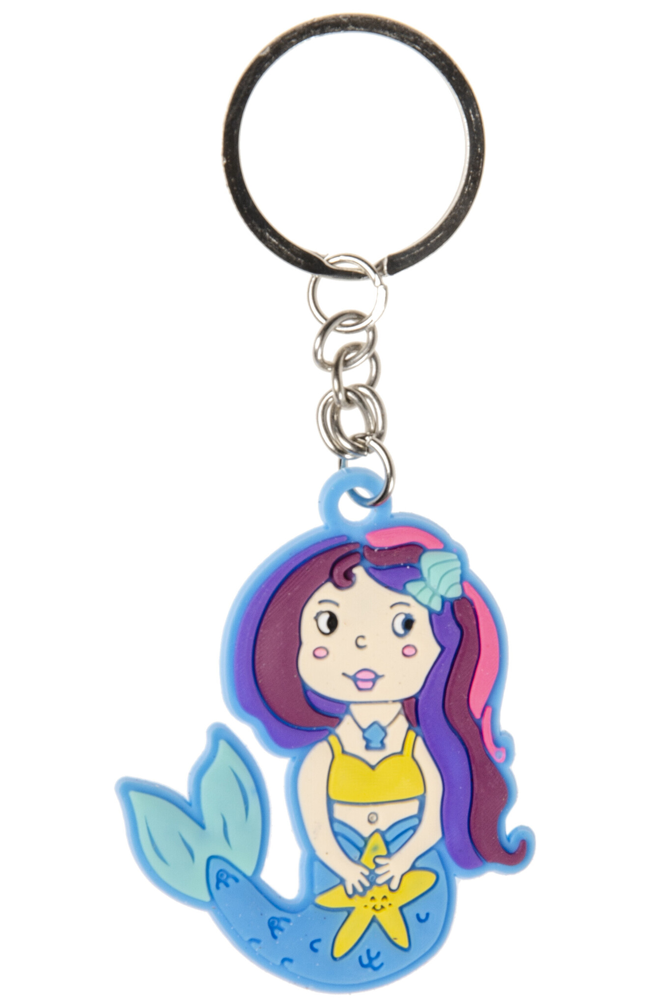 Sleutelhanger zeemeermin is uitgevoerd in diverse kleuren en wordt assorti geleverd. Materiaal: rubber.