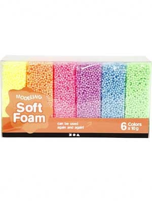 Het soft foam pakket bevat 6 verschillende kleuren van elk 10 gr. neon blauw. neon groen, neon geel, neon paars, neon oranje en neon roze.