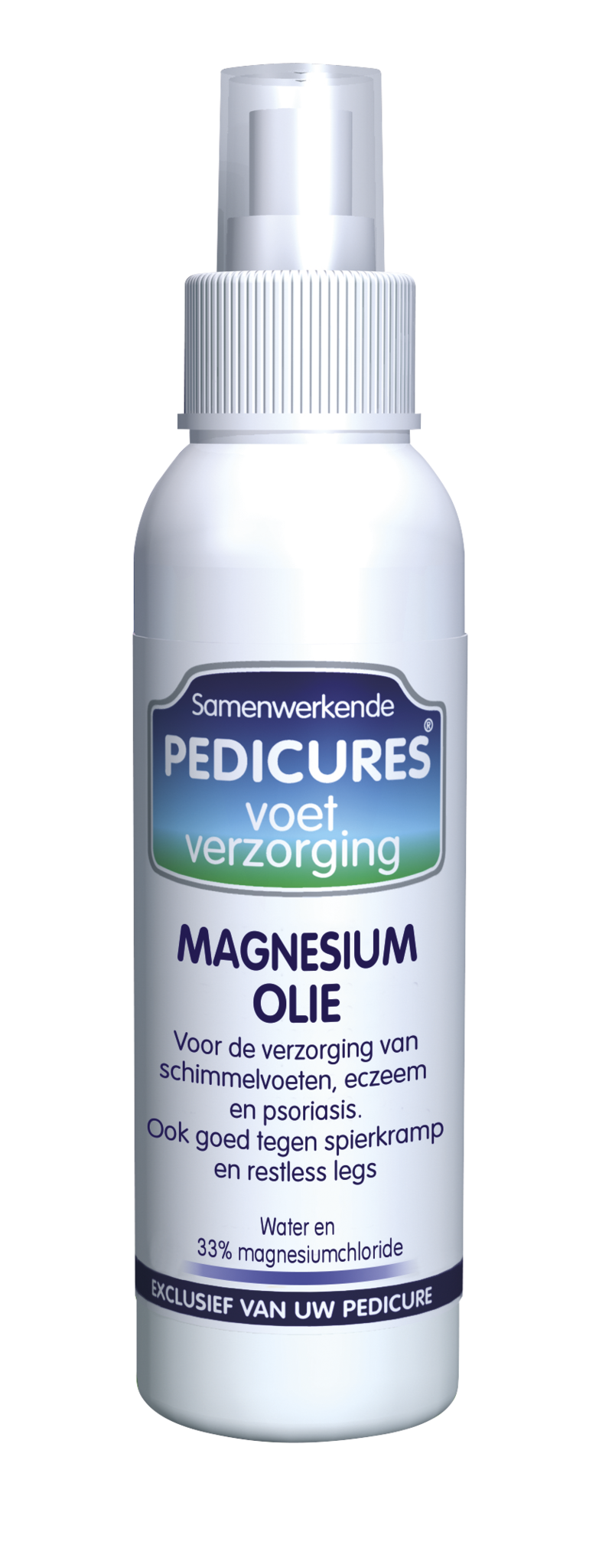 Voor de verzorging van schimmelvoeten, eczeem en psoriasis. Ook goed tegen spierkramp en restless legs. Bevat water en 33% magnesiumchloride. 2 x daags goed inmasseren. Bij spierkramp of restless legs direct olie aanbrengen op de pijnlijke plaats.