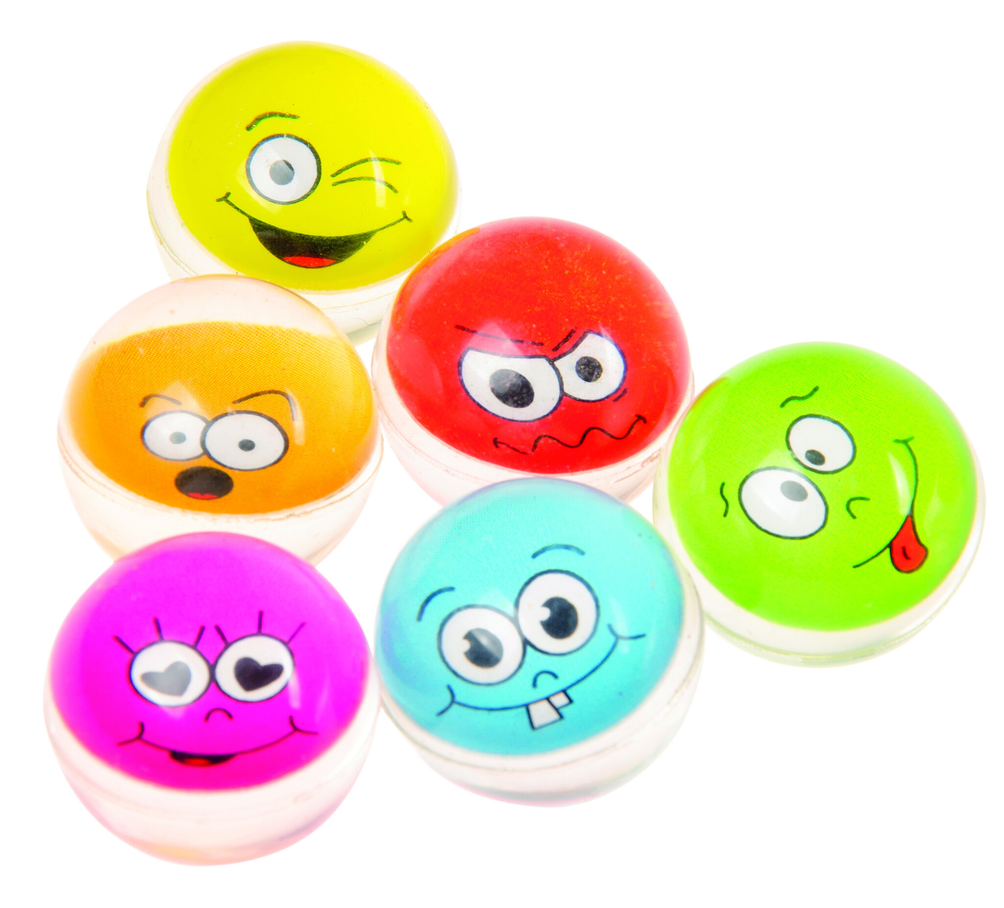 Bounce erop los met deze grappige stuiterballen met gezichten! Assorti kleur geleverd. Doorsnede ca. 32mm.