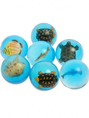De stuiterballen zijn uitgevoerd in diverse soorten en worden assorti geleverd. Doorsnede ca.: 45 mm.