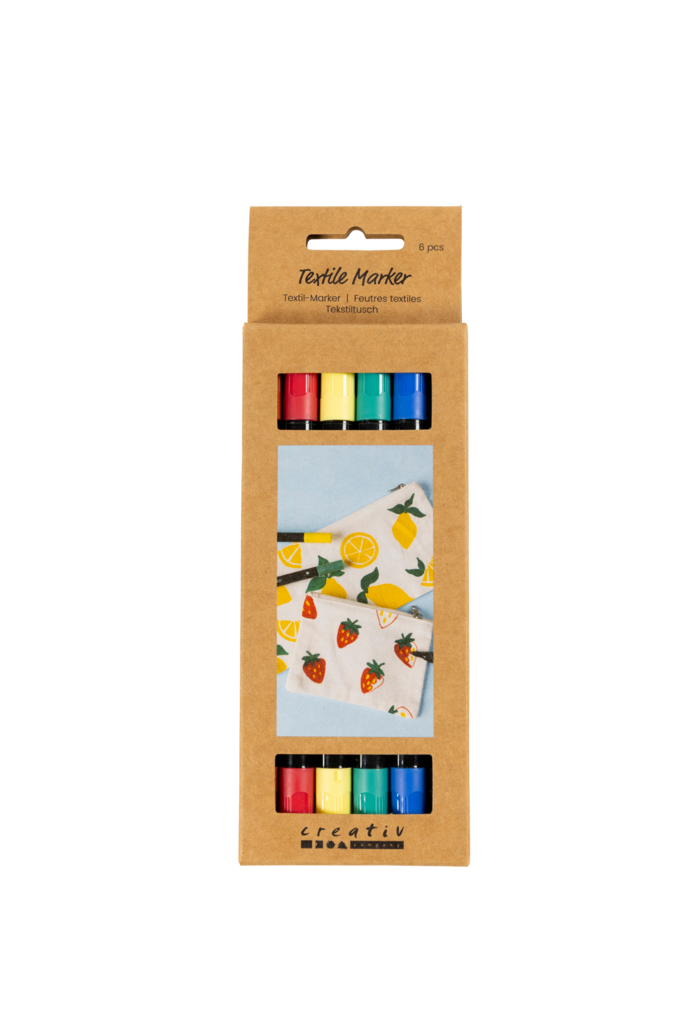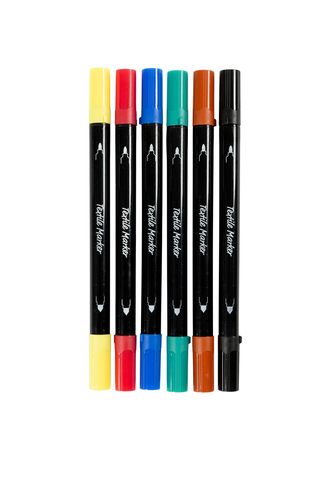 Goede kwaliteit, sterke, permanente textielstiften met dubbele punt. Schudden voor gebruik. Na fixatie wasbaar op 40°C.