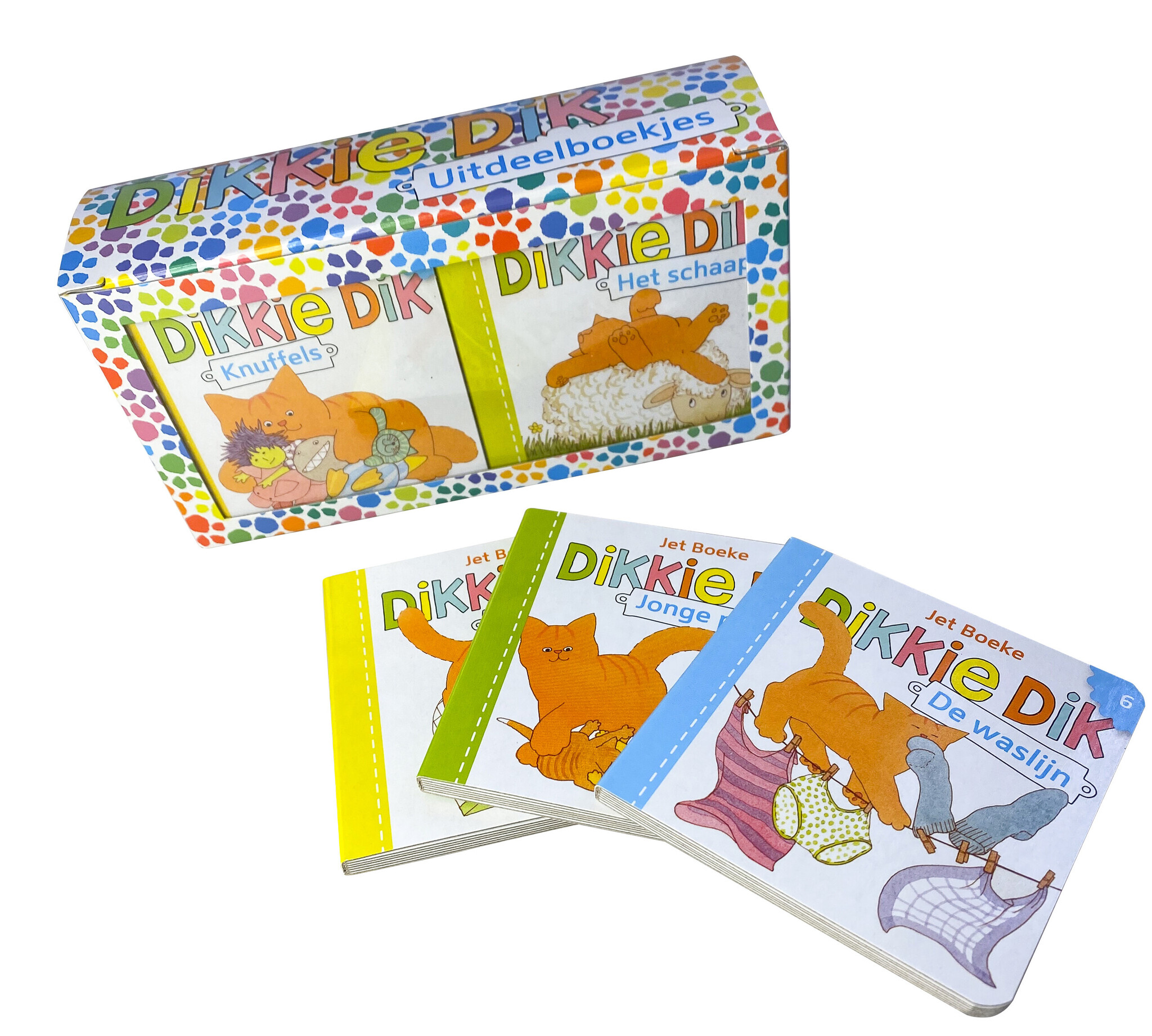 Elk Dikkie Dik uitdeelboekje heeft een kartonnen kaft, bevat twee leuke verhaaltjes met mooie illustraties en is 9 x 9 cm groot.