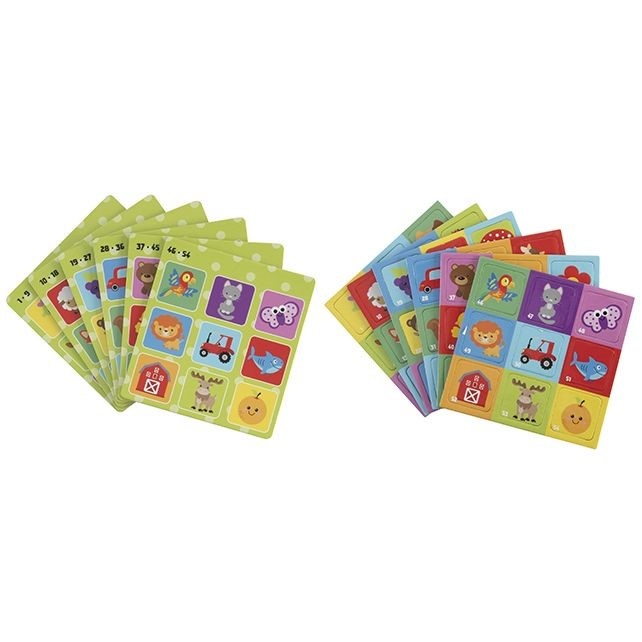 Wie lukt het als eerste de bingokaart vol te krijgen? Inhoud: 6 bingokaarten en 54 plaatjes. geschikt voor 2-6 spelers. Geschikt vanfa 3 jaar.