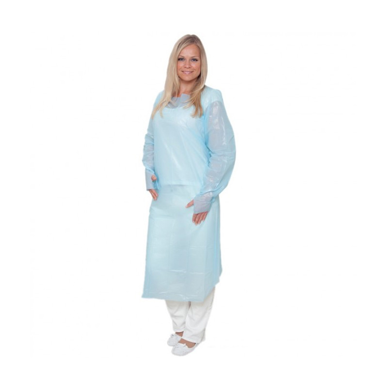De single use CPE-schort is ontwikkeld voor alle gebruikers die te maken hebben met water of andere (niet bijtende) vloeistoffen. De PE-schort is gemaakt van waterdicht polyethyleen zodat kleding beschermt wordt tegen vloeistoffen. Het schort is voorzien van lange mouwen en een duimopening waardoor hierover gemakkelijk handschoenen te plaatsen zijn.